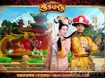 《步步驚心》網游是搜狐暢游(NASDAQ:CYOU)聯手唐人電影,以《步步驚心》影視文學作品為藍本,致力帶領玩家穿越回到清朝初年那宮廷明爭暗斗,亂世風云再起的年代。玩家可以在游戲中體驗“時空穿越”、“九龍奪嫡”、“拯救若曦”等劇情,玩家的每一步決擇都決定著《步步驚心》最后的結局。原著中的若曦,四阿哥,八阿哥,若蘭等角色也都將化身為玩家的伙伴傭兵,與玩家一起生活、成長、戰斗。游戲風格典雅華美,從《步步驚心》中勾心斗角的紫禁城到碧野千里的大草原等場景均得到完美還原,配上熱播劇中感人至深的精彩配樂,及“格格大戰僵尸”、“阿哥切西瓜”等將NDS、IPhone、PSP等掌上平臺與網絡游戲結合的百種趣味游戲玩法,讓玩家們在體驗原著精彩劇情的同時更可享受輕松爽快的游戲樂趣。