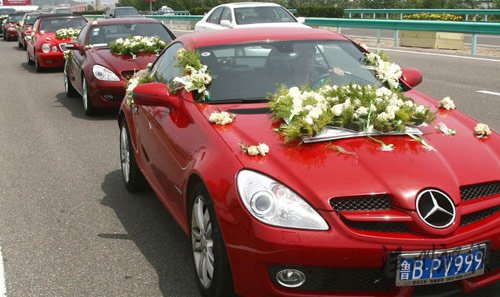 7月7日上午7時許,青島市民楊先生撥打本報熱線96663反映,他路過臺東一個花店時看到,路邊停著包括保時捷911、奔馳SLK350、寶馬Z4、奧迪TT 在內的40多輛豪車,花店的工作人員正在給每輛車扎花和絲帶。