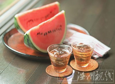 西瓜:西瓜性涼,吃了不僅能祛火,而且含有豐富鉀鹽,能彌補人體大量出汗造成的體內鉀鹽缺乏。但注意西瓜放入冰箱不要超過3個小時,否則營養也會被破壞。