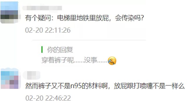 專家認為放屁不會傳播病毒,但這只是分析結果,目前還沒有這樣的實驗結果,所以,放屁會不會傳播病毒,可不一定。