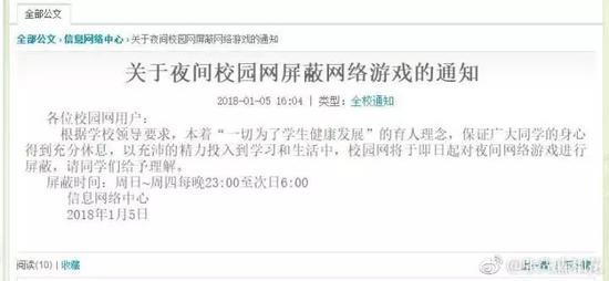 從網(wǎng)友發(fā)出的通知截圖看,校園網(wǎng)只是在一定的時(shí)間段屏蔽相關(guān)網(wǎng)絡(luò)游戲網(wǎng)站。