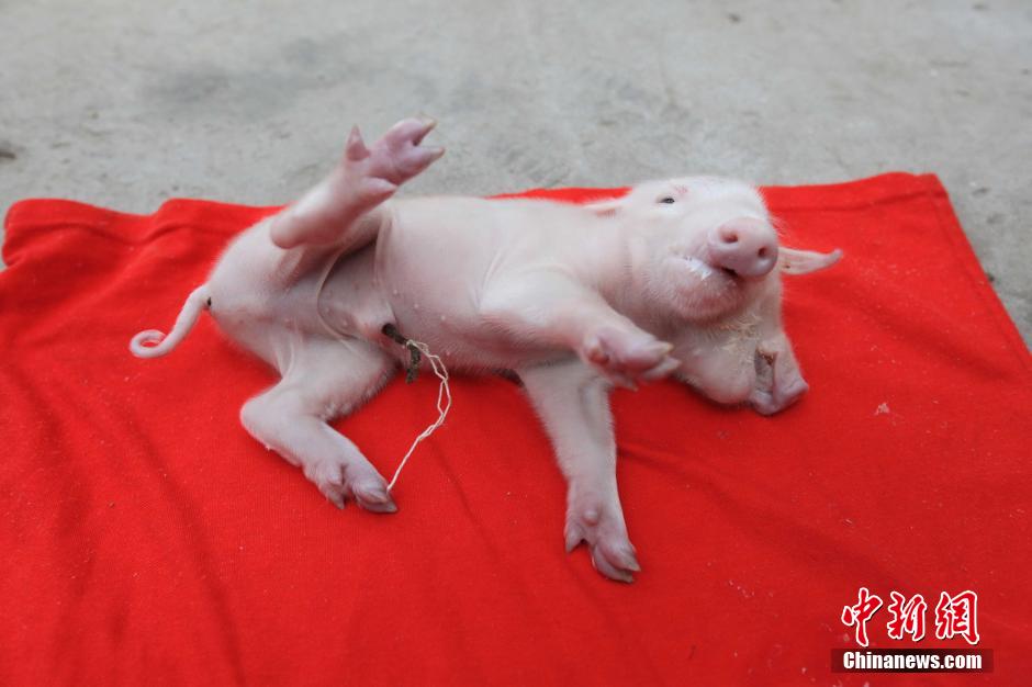 天津現雙頭豬:兩個腦袋三只耳朵的怪物。