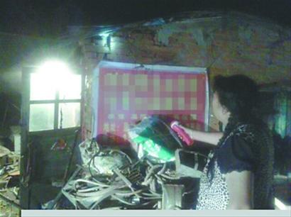 蓋州青石嶺鎮黃糧堆村村民王興富的妻子指著墻上一道裂縫說,這就是地震之后出現的。 記者 徐剛 攝