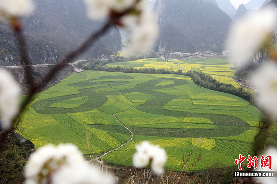 貴州安順龍宮風景區農民種出風景 油菜花田的巨型“龍”字
