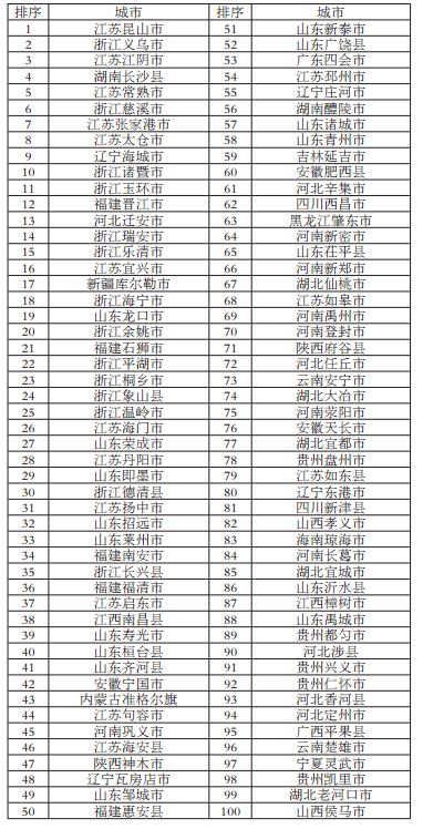 百強縣名單發布 百強縣市排行榜名單浙江21個百強縣市(5)
