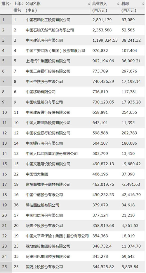2019年《財富》中國500強排行榜,中石化、中石油和中國建筑位居前三。