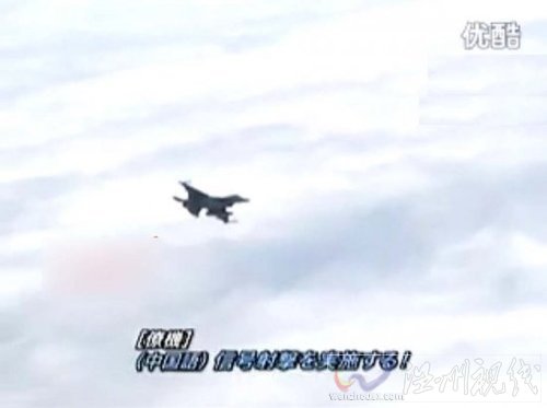 網絡上流傳的“日本F-2在東海上空向中國軍機開火”視頻截圖
