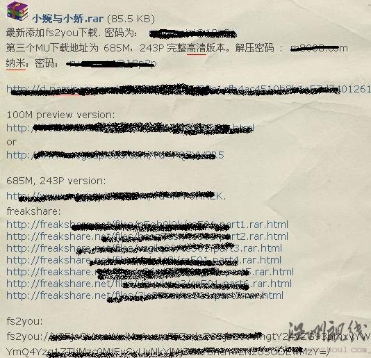 第二季小婉和小嬌243M被打包為:小婉與小嬌.rar 傳到了網盤,而且這些下載地址很可能會經常換,所以要徹底封殺閆氏是不可能的,想要封殺小婉和小嬌.rar這個文件,那么可能炒作的人會取個另外的名字來傳播。這種傳播已經遠遠超過了傳播淫穢內容這么簡單了,利用了傳播淫穢內容炒作,不管是閆氏個人還是幕后人,都是非法的,應該受到法律嚴懲的。