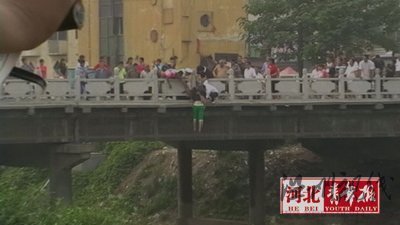 跳橋瞬間被民警抓住了手臂