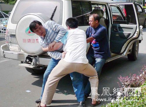 當日下午,記者趕到現場時,路邊停了一輛獵豹車(車號為甘A·70223),距離獵豹車不遠的地方,停著一輛31路公交車。在兩車之間,一位酩酊大醉的男子正在破口大罵。“這個人太猖狂了。”目擊者王先生說,當時,獵豹車從中山林十字一家酒店出來后向西行駛,當車行駛至中山林十字西北角,該車突然倒車,與停靠在后面的一輛31路公交車相撞。車輛相撞后,車上下來3名醉漢,不由分說,上前開始對公交司機拳打腳踢,車上十多名乘客中,其中兩名女乘客實在看不慣他們一行人的粗暴蠻橫行為,便上前進行勸說。誰知,幾名喝得酩酊大醉的男子抓住兩名女乘客就是一頓暴打,差一點將其中一名女乘客打翻在地。“他們見誰打誰,真是無法無天!”王先生說,看到女乘客被打后,車上一名男乘客上前阻止對方,但其中戴眼鏡的一名酗酒男子,一拳打過去,致使男乘客臉部受傷。3名男子的行為引起公憤,許多行人和乘客紛紛予以指責,但3名男子仍氣焰囂張,見誰打誰。無奈之下,有人打電話報警。