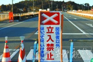 12日,距離福島核電站10公里處豎起“禁止入內”的標牌。