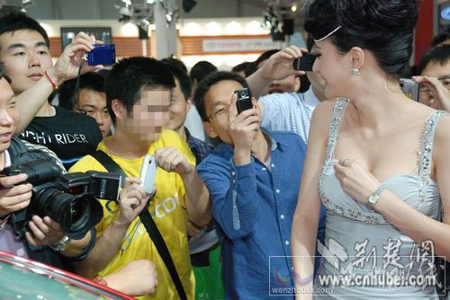 據荊楚網東湖社區網友爆料,5月21日,在武漢國際會展中心舉行的2011年第九屆華中國際汽車展覽會上,數百美女車模吸引了無數參觀者的眼球。一個穿黃色T恤的男青年擠在人群最前頭,用手機高角度偷拍車模胸部。被車模發現后,多次阻止,但“黃T恤”仍不死心,車模被迫中止了表演。最終“黃T恤”被眾攝影愛好者“炮轟”趕走。