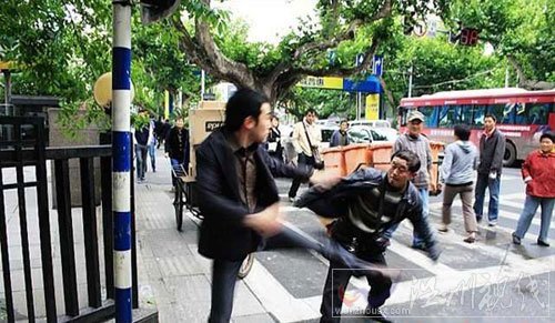 5月23日晚,一網友在某知名論壇曝出一組照片。照片中,一名男子在南京街頭當眾毆打一名看上去有50多歲的三輪車夫,施暴者年齡30歲左右。單從照片上看,施暴者對三輪車夫接連用腳踹,車夫無力招架。【點擊查看畫報:別克男飛踹三腳車夫】