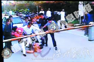 小區監控攝像頭拍攝的視頻顯示,多名保安參與毆打張芊的父親。