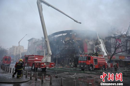 2月27日鄭州大火,消防部門啟用大型救火設備撲火