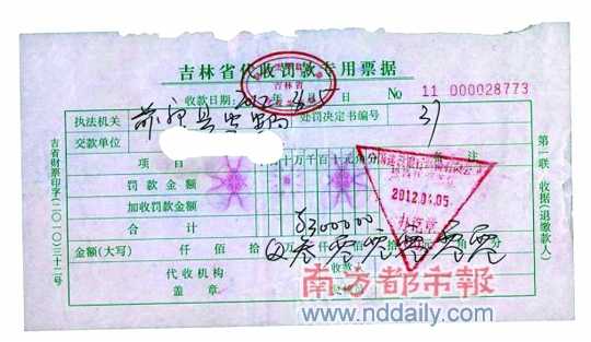 罰款收據。圖片來源:天涯論壇