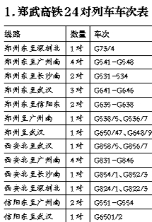 昨日,鐵道部表示,鄭武高鐵開通后,鄭西高鐵與鄭武、武廣高鐵全線貫通。西安將增開去往武漢、廣州、長沙、深圳方向的時速300公里的7對高鐵跨線列車。