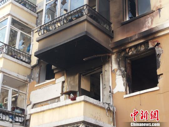 哈爾濱祥和家園爆炸造成部分墻體受損。