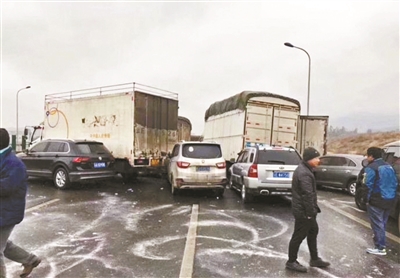 現場司機王先生告訴北青報記者,當天早晨6點多,他駕車從安寧市前往昆明,車輛開到碧雞關隧道前1公里左右的路段時,突然發現前方路面上停了許多車,“看上去應該是發生了事故,我趕緊踩剎車,但是發現車已經很難停住,一下子踩下去車就有側滑的傾向,我就只能點著踩剎車,然后控制方向,在距離前方事故車輛幾十米的地方把車停下了。”王先生說,“因為知道道路比較濕滑,所以我的速度一直開得比較慢,但是停下來的時候還是滑行了挺長的距離,車停下來之后我下車查看情況,發現前面已經有十幾輛車相撞了。”