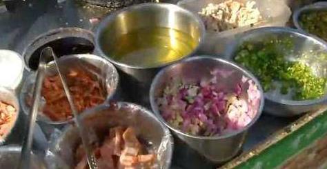 左手搖鍋右手翻炒,十幾種配菜和調料先后順序均有講究,味美、量多、新鮮,崔師傅說一天當中他得賣出去兩三百份。