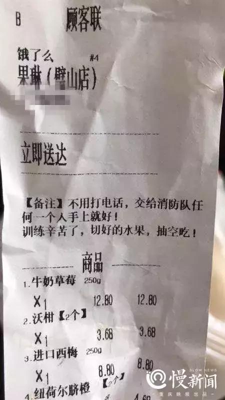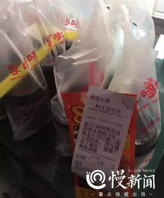 還有熱心市民擔心被拒收,還特意在下單的時候批注,“不用打電話,交消防隊任何一個人手上就好!”