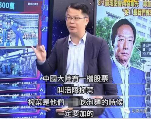 央視笑懟臺灣節目:繼大陸人吃不起茶葉蛋后,臺灣節目又爆笑料,嘉賓高談闊論,稱內地人吃不起涪陵榨菜了,還念錯了字,真是搞笑,央視主持人笑懟臺灣節目,那些臺灣專家是井底之蛙。