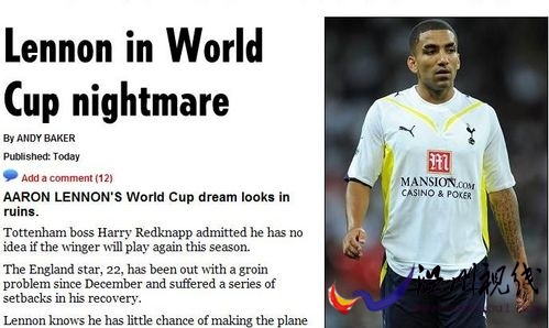 熱刺邊鋒列儂很有可能無緣今夏的南非世界杯,熱刺主帥雷德克納普指出,他也不知道這位英格蘭邊鋒本賽季能否再次上陣。