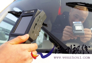 溫州高速路政大隊的工作人員為剛安裝在車上的不停車收費電子標簽進行測試。溫州日報劉偉攝