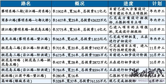 這10條道路分別是黎明東路二期、商務(wù)六路、濱江路、惠民北路、桃花島二路、桃花島三路、桃花島四路、桃花島五路、航標路和高田路。其中,黎明東路二期為濱江商務(wù)區(qū)東西走向的主要道路,商務(wù)六路則是商務(wù)區(qū)內(nèi)南北走向的主要道路。