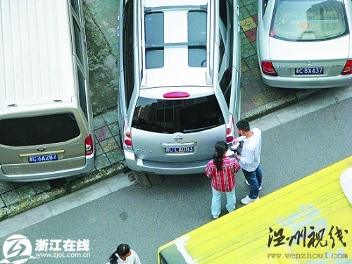 5月20日上午10時(shí),溫州市區(qū)人民路國信大廈樓下。記者將自備車停到地下車庫后,走上路面,看到4位"熟悉"的看護(hù)人員,正忙碌地引導(dǎo)車輛臨時(shí)停放。