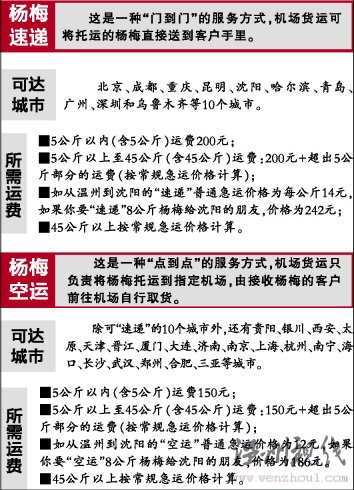 機場方面說,市民可自購楊梅后,到永強機場貨運營業部或永強機場客貨運營業部和市區錦繡路民航售票處辦理手續;也可由機場貨運方面提供楊梅農戶電話,市民再和楊梅農戶取得聯系,由農戶把楊梅送到機場代辦"速遞"或"空運"手續,相關手續要提前130分鐘辦理。如果需要"速遞"或"空運",最好先查詢清楚航班起飛時間,再購買楊梅或代買楊梅。