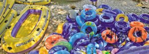 7月31日下午,楠溪江獅子巖景區內租賃游泳圈的店家在等待游客 戴陳俊 攝