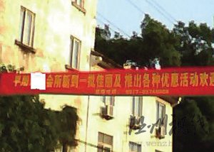 昨天中午,根據(jù)網(wǎng)友所發(fā)圖片及所述位置,記者先后走訪昆陽鎮(zhèn)平瑞路、健康路、聯(lián)東路、白石街等繁華路段,均未發(fā)現(xiàn)街上有懸掛此類橫幅。隨后,一名網(wǎng)友在平陽信息網(wǎng)第一社區(qū)跟帖稱,這條橫幅是某會所未經(jīng)審批懸掛上去的,相關(guān)單位發(fā)現(xiàn)后,已將5條該內(nèi)容的橫幅拆除。