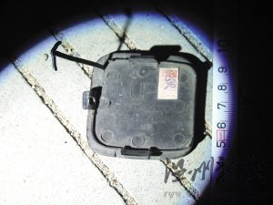 民警走訪汽車修理店比對這塊塑料片,確定該塑料片系老款豐田"凱美瑞"轎車的前保險杠拖車蓋,并發現該拖車蓋不是原裝的,上面的"SR"字樣可能是汽配店賣出時自做的記號。
