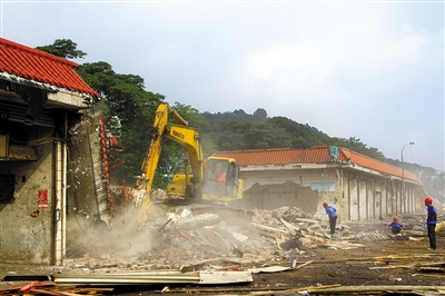 圖為去年7月水果市場(chǎng)沿河店面被拆除的場(chǎng)景。劉偉攝