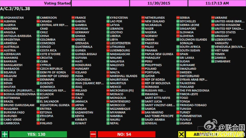 2015年11月21日,聯合國針對敘利亞問題進行公開投票,中國投反對票后引起很多質疑。同樣投反對票的除了中國還有古巴、俄羅斯、朝鮮等15個國家。