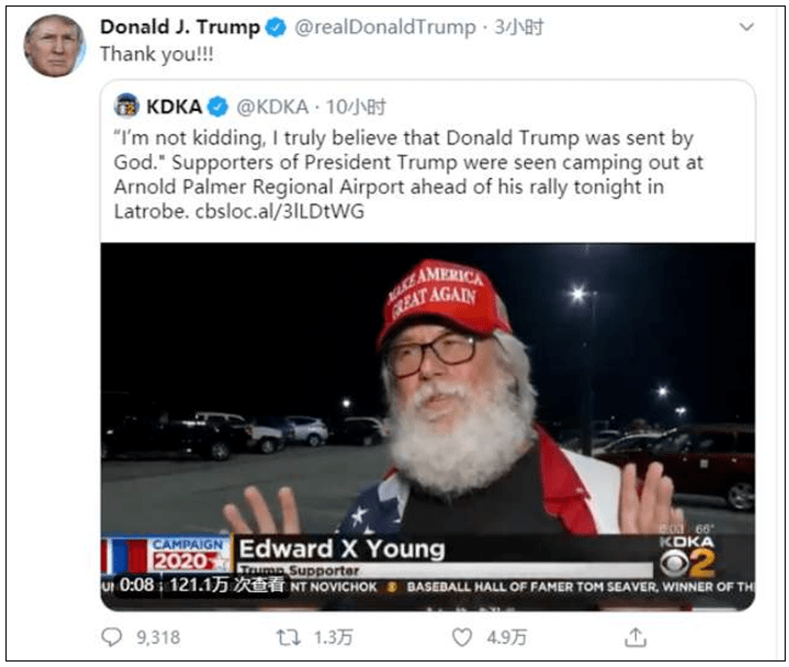 另外,美國還是一個基督文化的國家,很多人都相信特朗普是上帝派來拯救他們的——如果特朗普熬過這關(guān),這不更加說明“特朗普是上帝派來”的嗎?