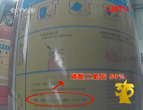 這種滅火器主要的滅火成分是磷酸二氫氨。廠家在向國家消防產品質量信息網站申報以及在產品標簽上標注時寫的都是磷酸二氫氨含量為50%,然而在實際生產中,滅火器中磷酸二氫氨的含量卻只有20%。這樣一來,一個滅火器的成本就降到3至4元錢。不僅如此,廠家還把滅火器筒體上的鋼板厚度從國標的1.15毫米降到了1.1毫米。
