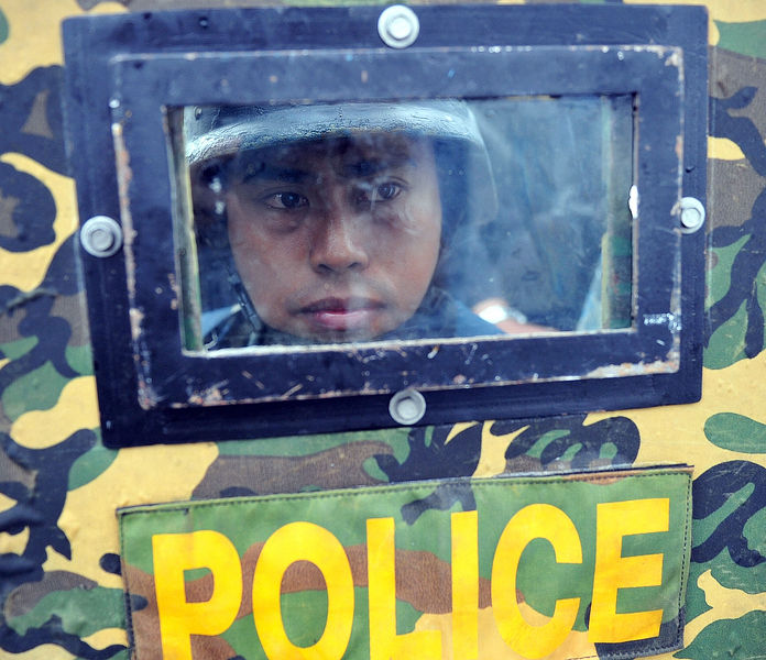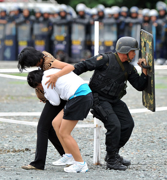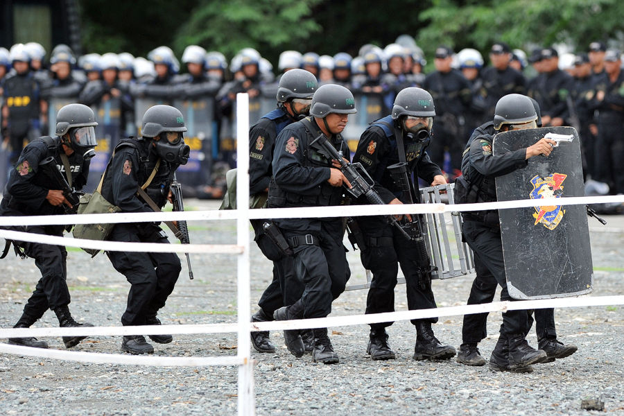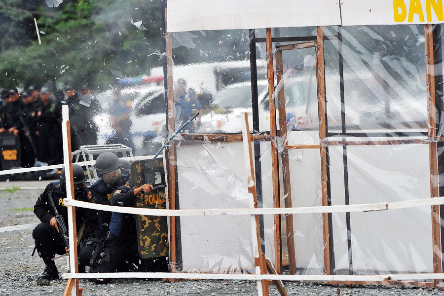 當(dāng)?shù)貢r(shí)間9月3日,菲律賓馬尼拉,參加演習(xí)的菲律賓精英部隊(duì)正在準(zhǔn)備攻突入被劫持的銀行。當(dāng)天菲律賓政府就8月23日人質(zhì)劫持事件成立的“事故檢討委員會(huì)”(IRC)啟動(dòng)正式調(diào)查程序,但調(diào)查結(jié)果何時(shí)出爐暫不明朗。