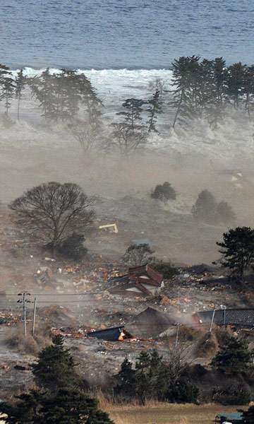 日本地震-日本3月11日大地震,仙臺(tái)宮城地區(qū)遭遇10米高的日本海嘯。日本近海3月11日發(fā)生了里氏8.9級(jí)大地震,日本東京震感強(qiáng)烈。仙臺(tái)機(jī)場(chǎng)被沖毀,大量農(nóng)田、房屋被淹沒(méi),東京市民紛紛到戶外躲避地震。日本3.11大地震死亡人數(shù)在不斷上升,毀壞房屋汽車農(nóng)田不計(jì)其數(shù)。