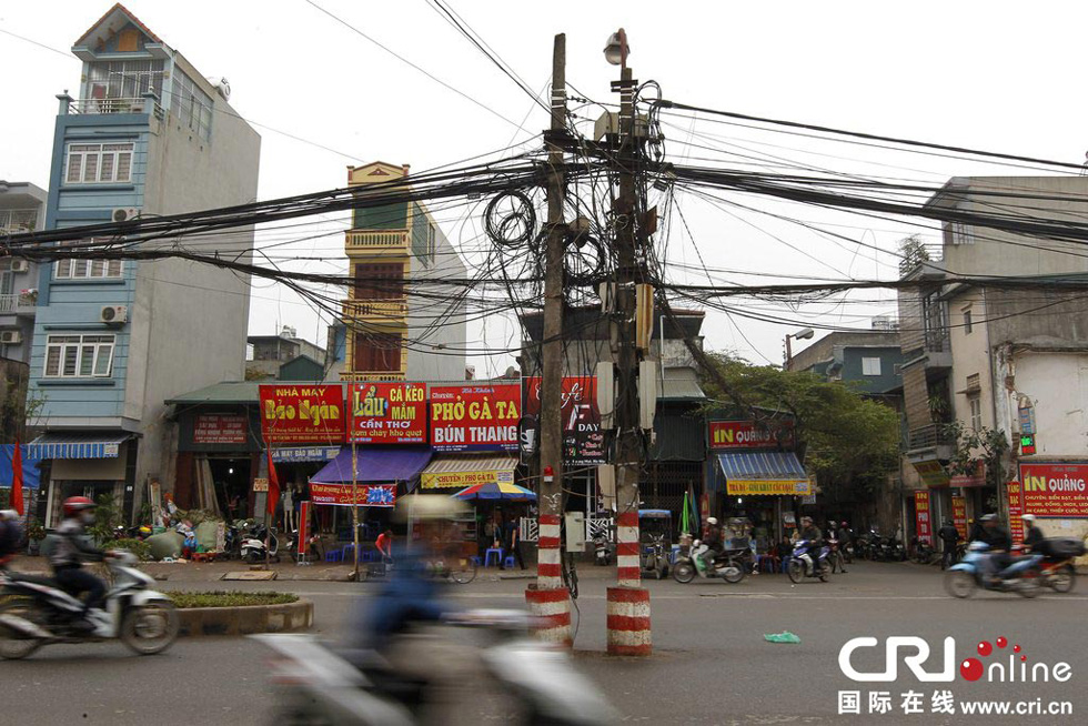 越南河內街景最具特色的不是建筑,也不是越南姑娘,是電線桿,河內是越南首都,但越南河內確實比較落后,不說建筑,單說電線桿上的電線像老鼠尾巴纏繞在一起,據說這些電線已經幾十年沒有更換了。