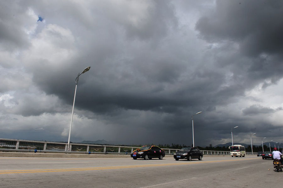 7月15日,海南瓊海市上空烏云密布大雨欲來。強熱帶風暴“康森”目前正在向海南逼近,氣象臺預計這個風暴將于7月16日在海南東部沿海地區登陸,海南海事局啟動防臺應急橙色預警。