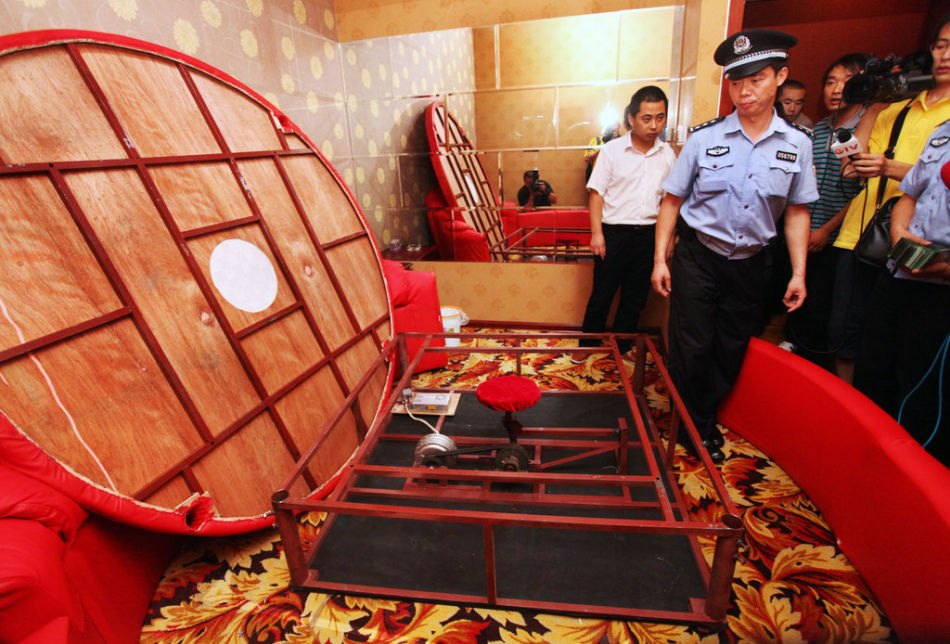 西安警方突擊娛樂場所 現場拆除合歡床
