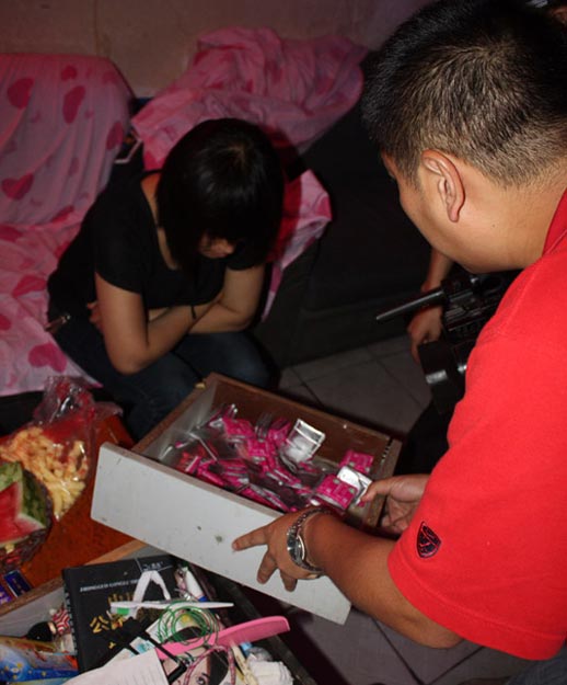8月26日,西安市雁塔分局調集60余名警力,對吉祥村20余家美容美發廳進行清查,結果發現當晚所查6成美容美發廳都有色情交易違法活動,當場抓獲涉嫌賣淫嫖娼53人。民警在檢查中從涉嫌賣淫人員處搜出的避孕套。