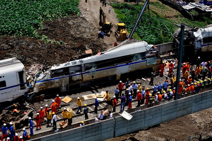 溫州動(dòng)車追尾航拍圖:7月24日凌晨6時(shí)50分左右,