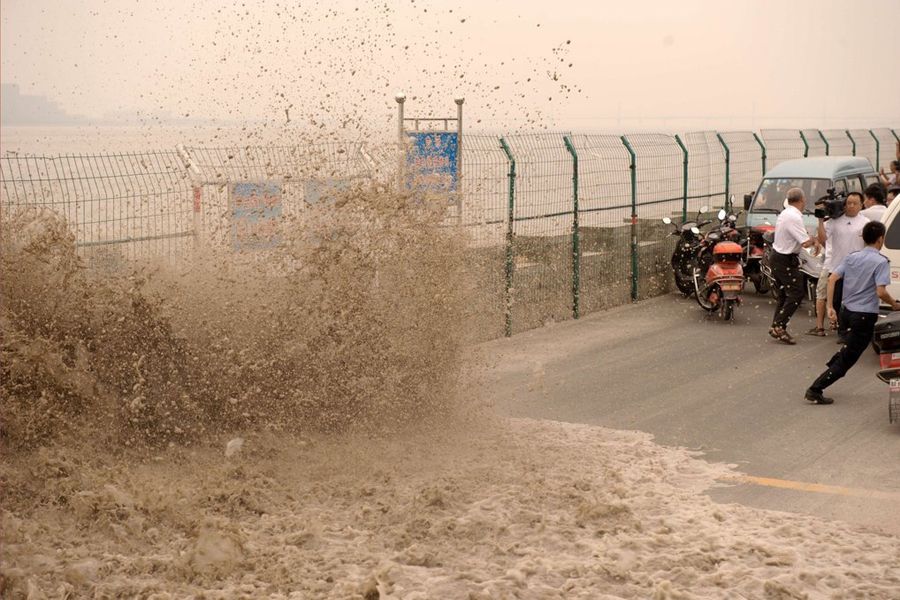 錢塘潮圖片:錢塘觀潮也很危險(xiǎn)的,站在岸邊離江太近,大浪打過(guò)來(lái),人就會(huì)被潮水卷走。連日來(lái)發(fā)生在錢塘江的溺水事件很多。8月14日,錢塘江大潮卷走了2人,其中1人僥幸生還;8月15日,錢塘江里發(fā)現(xiàn)一具浮尸;8月17日凌晨,錢塘江再次發(fā)生溺水事件,一名1995年出生的安徽籍少女不幸被夜潮卷走,至今下落不明。幾天來(lái),至少已有3人水中喪生。圖為8月17日,錢塘江大潮如期而至,觀潮游客連忙躲閃。圖/CFP