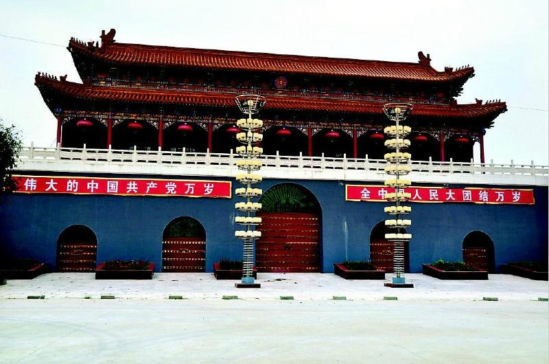這年頭,瘋狂的人真不少,天安門都有人山寨。近日有網(wǎng)友發(fā)帖爆料岐山縣五丈原有一座酷似“天安門”的大門樓,被網(wǎng)友戲稱為寶雞山寨版“天安門”。8月29日,記者在當(dāng)?shù)乜吹搅宋挥卺娇h五丈原鎮(zhèn)的這座三層仿古建筑,紅墻黃瓦、飛檐彩繪。據(jù)了解,岐山縣五丈原鎮(zhèn)街道建的這座“城樓”,是當(dāng)?shù)匾患移髽I(yè)為自己工廠重修的東大門。該城樓高33米,寬45米,一樓設(shè)置為該企業(yè)禮堂和大門,在二樓設(shè)置的是企業(yè)接待和辦公的地方。
