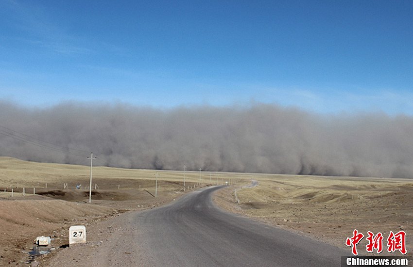 2013年3月5日上午10點(diǎn),甘肅山丹馬場(chǎng)遭遇2013年首次沙塵暴襲擊。目擊者稱,沙塵暴來襲時(shí)出現(xiàn)黑風(fēng),黑風(fēng)是不是像小說描寫的猛虎出林那瞬間的景象,我們沒有見過,看記者拍攝的沙塵暴圖片,沙塵暴就象一堵墻由西向東滾滾而來,原本晴朗的天空頓時(shí)昏黃一片。
