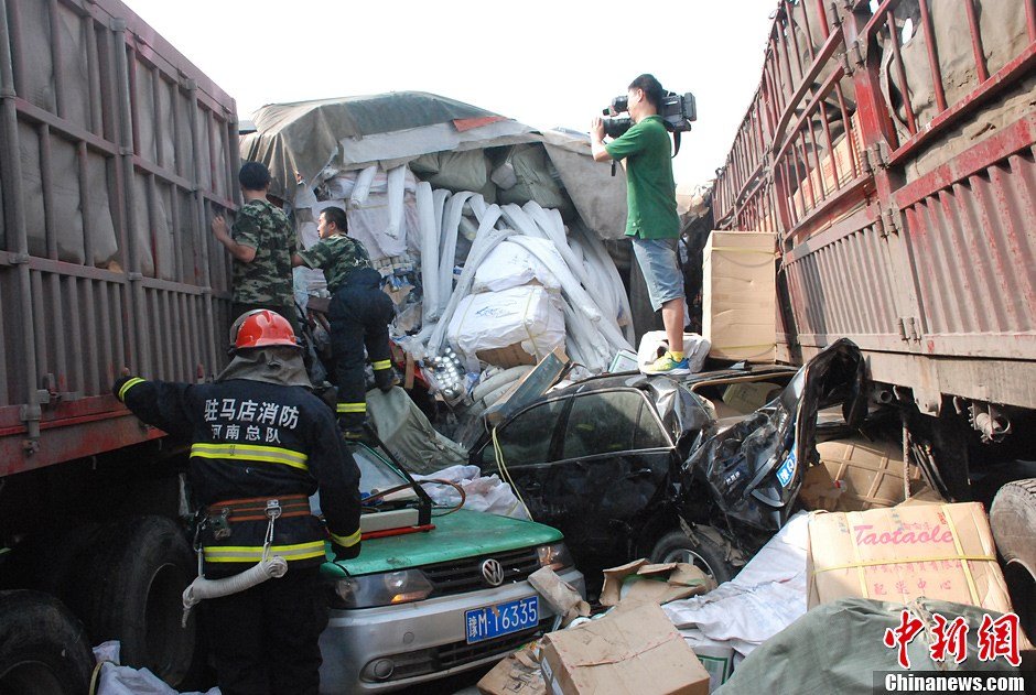 駐馬店高速連環相撞:2013年6月4日,京港澳高速駐馬店段發生16起連環車禍,駐馬店高速車禍共發生16處,56輛車連環相撞,目前,駐馬店連環車禍已造成49人受傷,截至昨晚11點,駐馬店高速車禍已造成9人死亡。