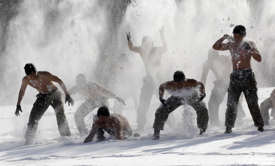 特戰(zhàn)隊雪地訓(xùn)練,在據(jù)說零下30度的雪地,赤膊玩雪,訓(xùn)練。韓國軍隊特戰(zhàn)隊員身體素質(zhì)真好,